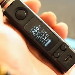 - Боксмоды – мощные электронки со встроенной платой, которая позволяет регулировать мощность, силу испарения и режимы работы. Лучшие многоразовые электронные сигареты по типу бокс-мод предлагают вейперам съемный аккумулятор, наличие или отсутствие дисплея, кнопку «Fire» и различные варианты испарителей.