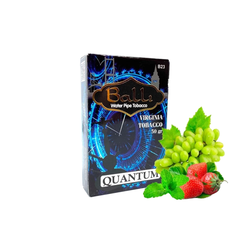 Тютюн Balli Quantum (Квантум, 50 г) для кальяну виготовлений із вибраних сортів тютюну. Незалежно Virginia, Burley або Oriental входить до складу, виробник завжди вибирає найкращі сорт! Що гарантує його видатні курильні якості. Завдяки продуманій технології обробки, у цього тютюну Середня жаростійкість, що дозволяє довше насолоджуватися кожною сесією куріння, не втрачаючи при цьому м'якість і повноту аромату. Він рівномірно прогрівається і вимагає частої заміни вугілля. Суміш легка в обігу, забиванні та відрізняється густим димом, що робить процес куріння максимально комфортним. Такий тютюн підійде у будь-якій компанії друзів.